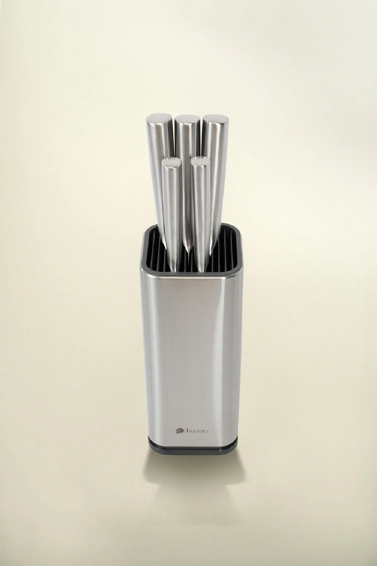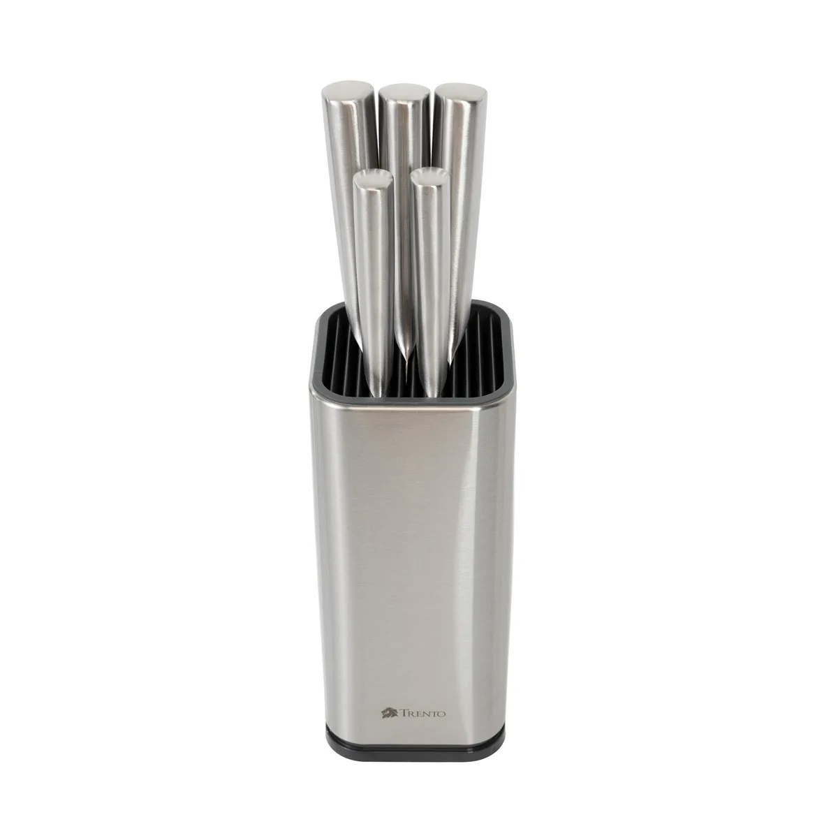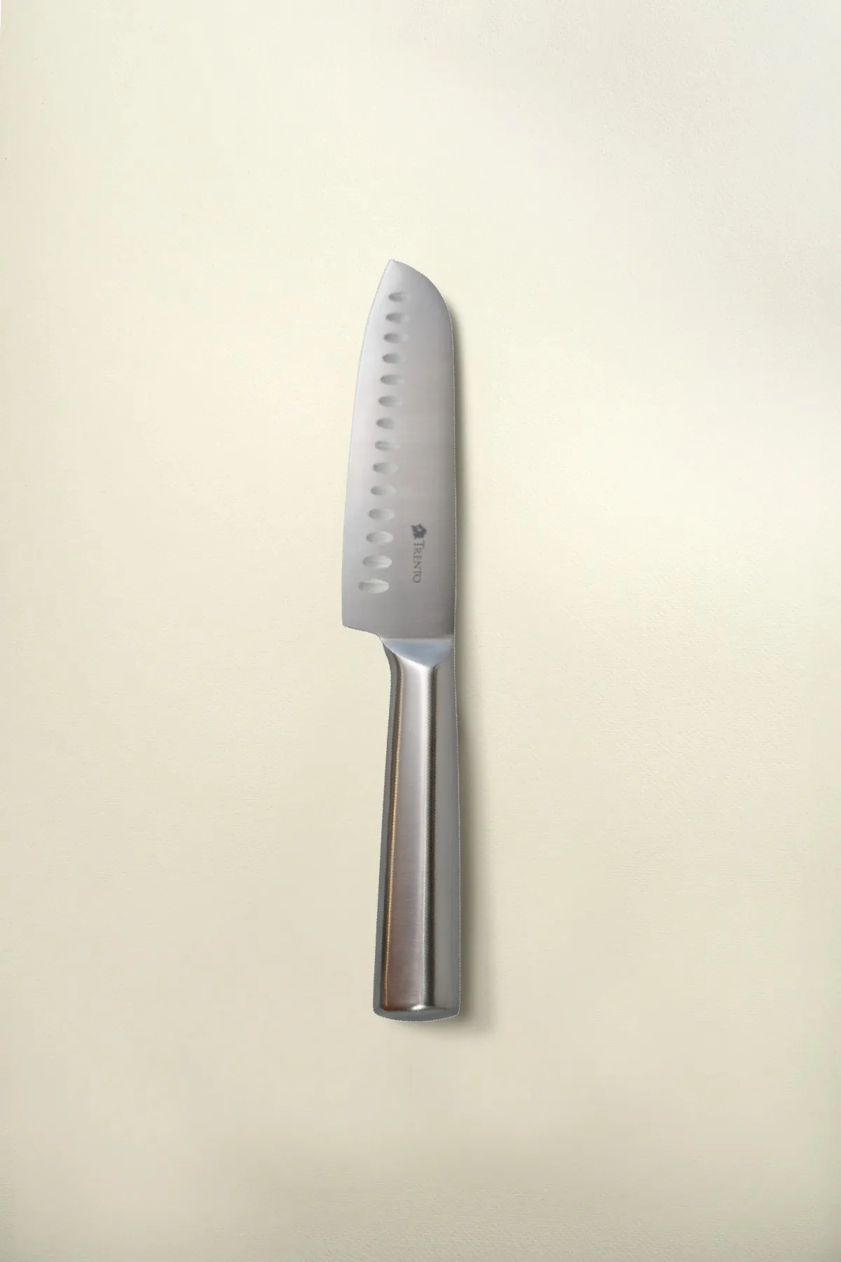 El Cepo Trento Santoku de 5 piezas destaca por sus hojas de acero inoxidable 420 y mangos de acero 430. Diseño ergonómico con filo liso de alta precisión.