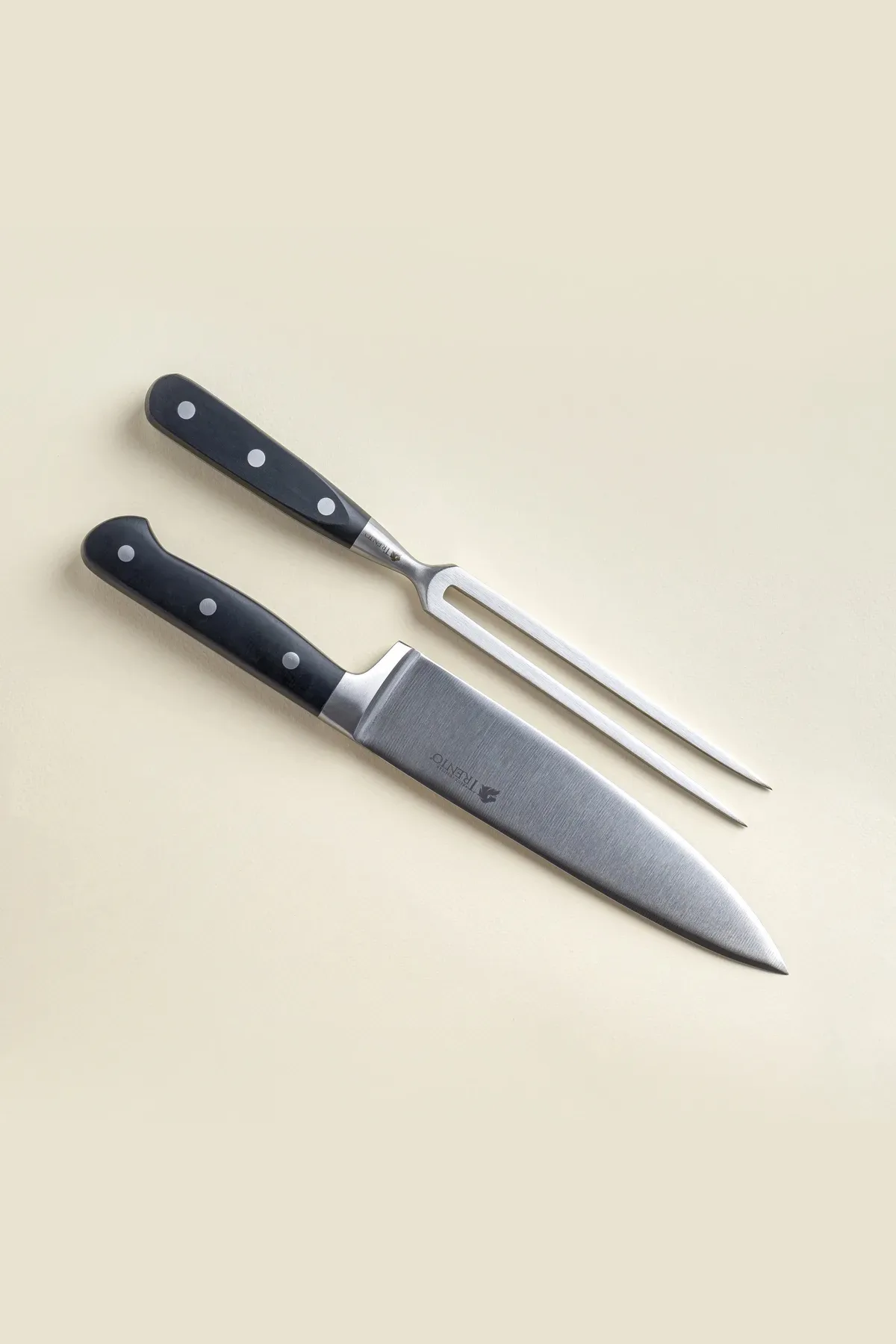 Este conjunto de dos piezas de la línea Trento es imprescindible para los amantes de los asados. Conjunto perfecto para cualquier ocasión de asado.