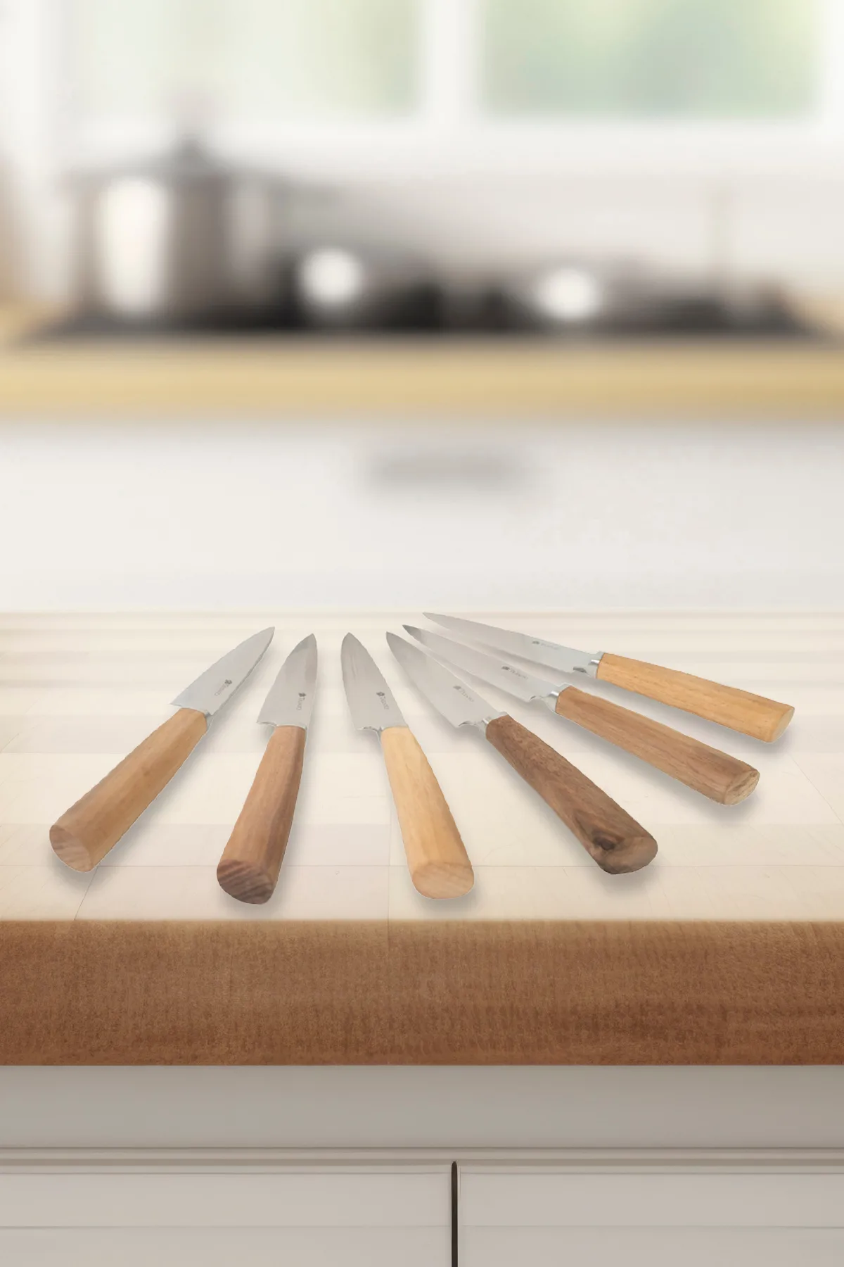 Set x6 Cuchillos Acero Inox Reforzado Madera